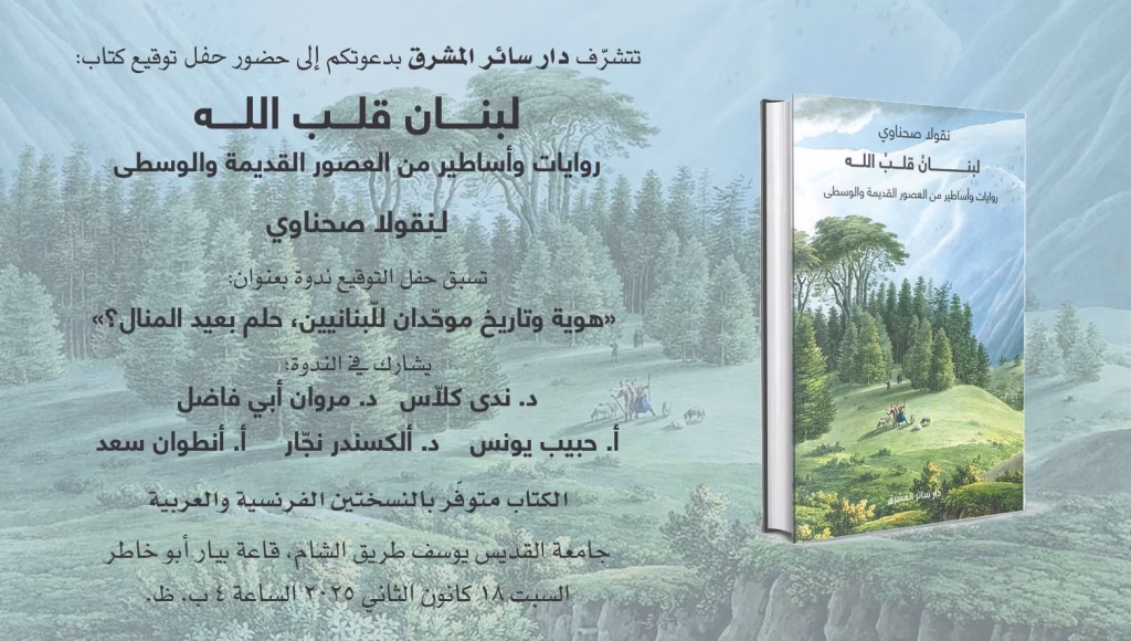 لبنان، قلب الله، لنقولا صحناوي 17 يناير، 2025 LIBAN, COEUR DE DIEU de NICOLAS SEHNAOUI ShareShareShare Previous Postماكرون في مقهى بالجميزة… فيديو Next Postالرئيس عون يتصل بفادي الخطيب مهنئًا