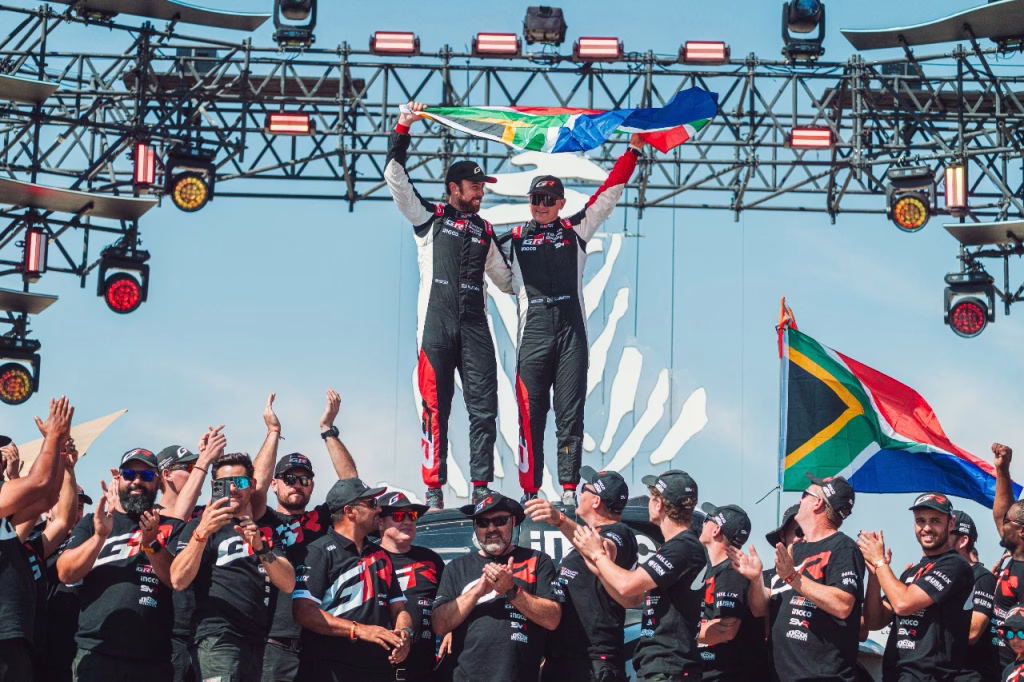 حقّقت شركة تويوتا فوزاً مميزاً خلال منافسات رالي داكار2025، إذ حقق يزيد الراجحي ومساعده تيمو جوتشالك الفوز بالمركز الأول على متن مركبة “هايلكس” GR Dakar Hilux Evo التي تحمل الرقم 201، فيما نجح فريق تويوتا جازو للسباقات بقيادة هينك لاتيجان ومساعده بريت كومينغز في عبور خط النهاية في المركز الثاني، بفارق دقائق معدودة، على متن مركبة “هايلكس” GR Dakar Hilux Evo التي تحمل الرقم 211، لتحقّق تويوتا بذلك فوزا كبيراً بحصد المركزين الأول والثاني في الرالي.