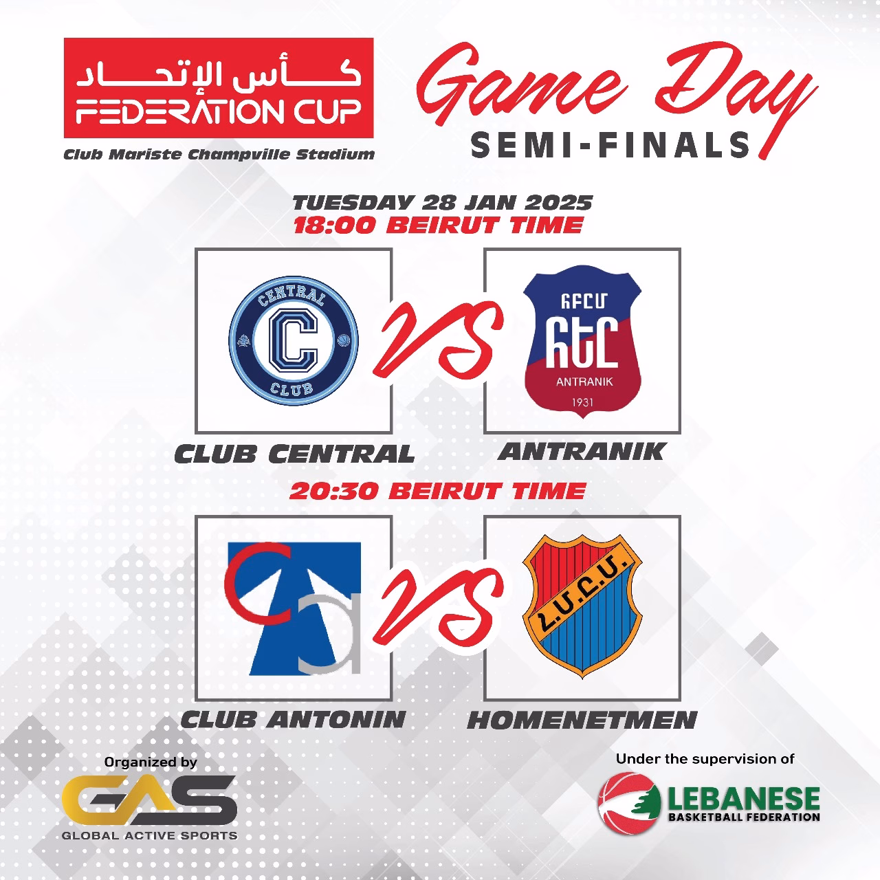 تقام اليوم مباراتا نصف نهائي مسابقة كأس الاتحاد لكرة السلة التي تجري منافساتها على ملعب الشانفيل في ديك المحدي بإشراف ورعاية الاتحاد اللبناني لكرة السلة.ويلعب في السادسة مساء المركزية وانترانيك، فيما يلعب عند الثامنة والنصف الانطوني بعبدا وهومنتمن. 28 يناير، 2025 ShareShareShare Previous Postعناوين الصحف وأسرارها Next Postمن يضع حدًا لسياسات النصب قبل الإنفجار المدمر …..