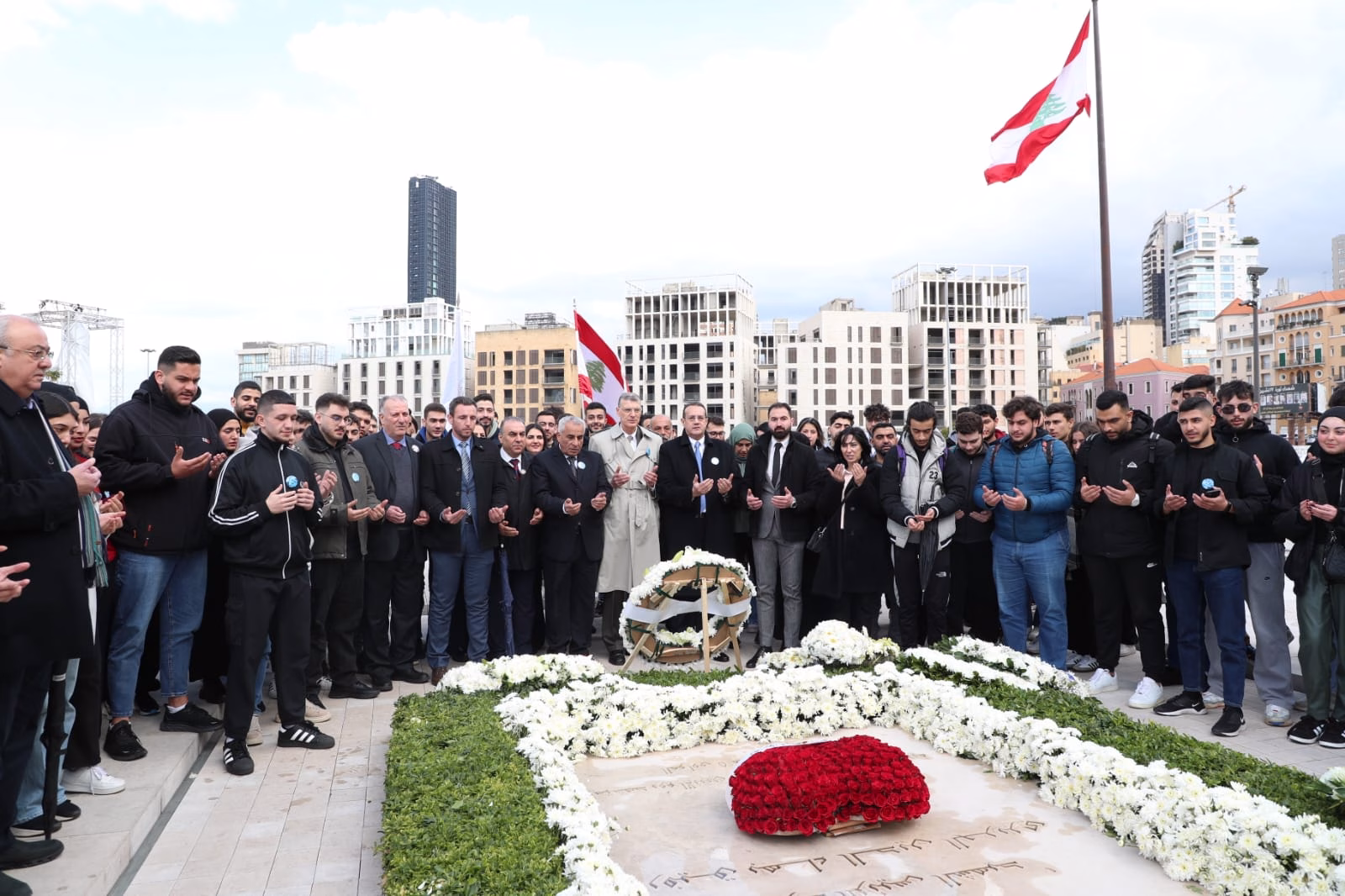 عقب الحفل، توجّه رئيس الجامعة ونوابه والأساتذة والطلاب إلى ضريح الشهيد في وسط بيروت، حيث وضعوا إكليلًا من الورد الأبيض، تعبيرًا عن وفائهم لقيمه وإرثه التعليمي.