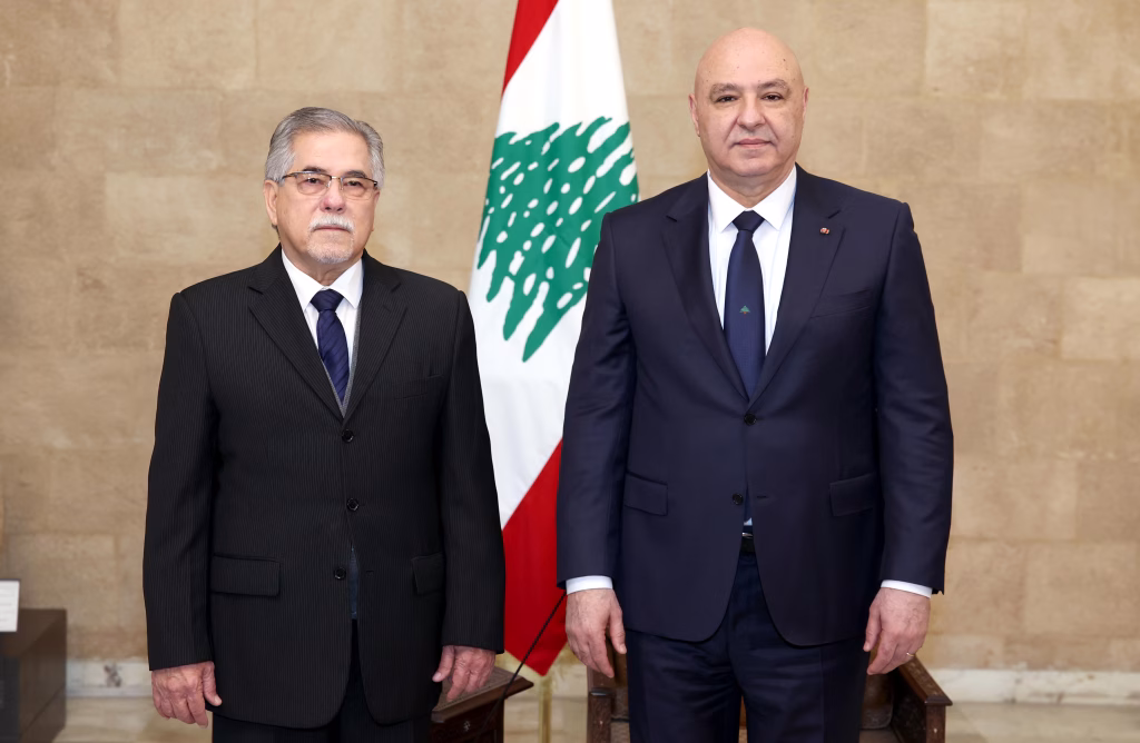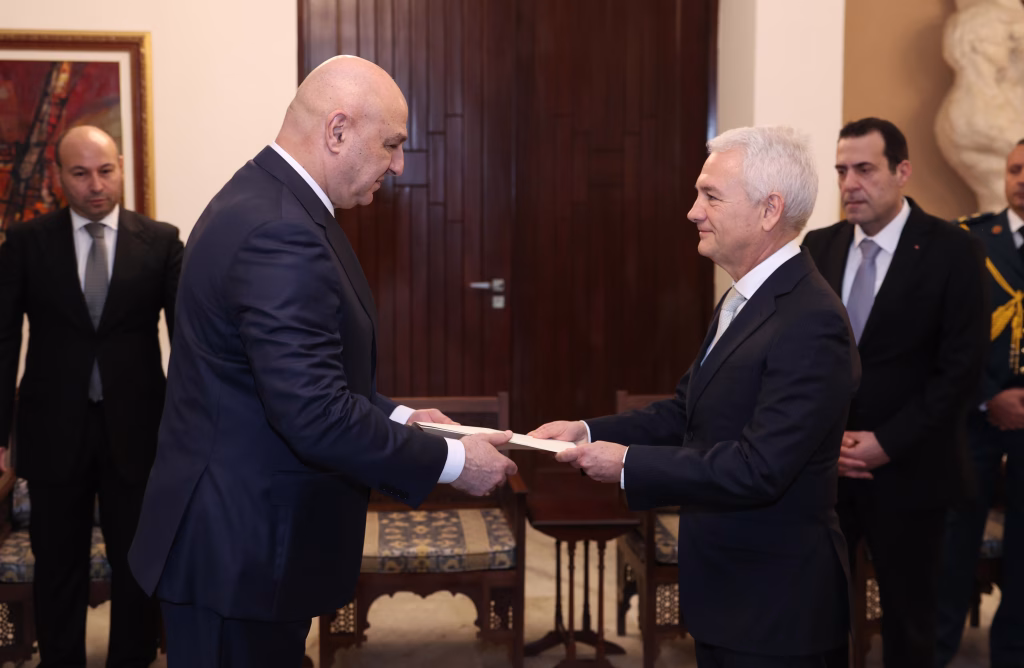 تسلم رئيس الجمهورية العماد جوزاف عون اوراق اعتماد ثمانية سفراء جدد معتمدين في لبنان هم: سفير البرازيل Tarcisio de Lima Ferreira Fernandes Costa، سفير كوبا Jorge Porfirio Leon Cruz، سفير ايطاليا Fabrizio Marcelli، سفير صربيا Milan Trojanovic، سفيرة النروج Hilde Haraldstad، سفيرة النمسا Franziska Honsowitz Friessnigg، سفير تركيا Murat Luten، وسفير الجزائر كمال بوشامة.