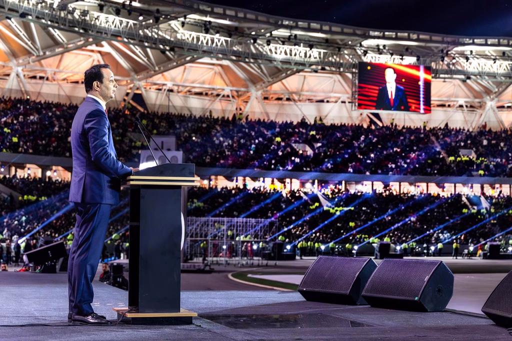 خلال كلمته في الافتتاح، أكد المشير خليفة بالقاسم حفتر، القائد العام للقوات المسلحة الليبية، أن ليبيا ستظل موحدة رغم التحديات، مشددًا على أهمية الرياضة في جمع الليبيين تحت راية واحدة بعيدًا عن الانقسامات. كما أشار إلى أن إعادة تأهيل الملاعب والمنشآت الرياضية تمثل خطوة أساسية لتمكين الشباب وتعزيز دورهم في المجتمع. من جانبه، أعلن رئيس صندوق تنمية وإعمار ليبيا، بلقاسم خليفة حفتر، أن المشروع لا يقتصر على الملعب فحسب، بل يشمل مرافق رياضية متكاملة ستحدث نقلة نوعية في الرياضة الليبية من خلال توفير بيئة حديثة ومتطورة لممارسة مختلف الأنشطة.