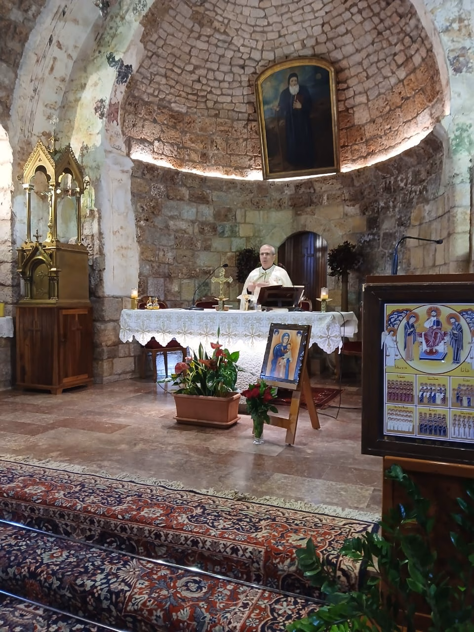 أحتفل بالقداس، الأب ريمون كيروز مدير الواحة، عاونه الأب دانيال العلم أقنوم الدير.