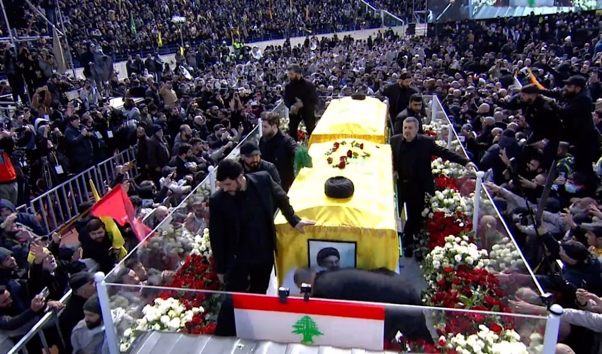 نجح حزب الله في حشد جمهور “الثنائي” في رسالتين خارجية وداخلية أراد منهما تأكيد حضوره الفاعل رغم الخسائر التي مني بها في الحرب الأخيرة. فتحول تشييّع السيدين حسن نصرالله وهاشم صفي الدين في مدينة كميل شمعون الرياضية في بيروت إلى ما يشبه استفتاء شعبيا. إذ شاركت حشود قدرها المنظمون بأكثر من مليون شخص من أنصار الحزب وحركة أمل.