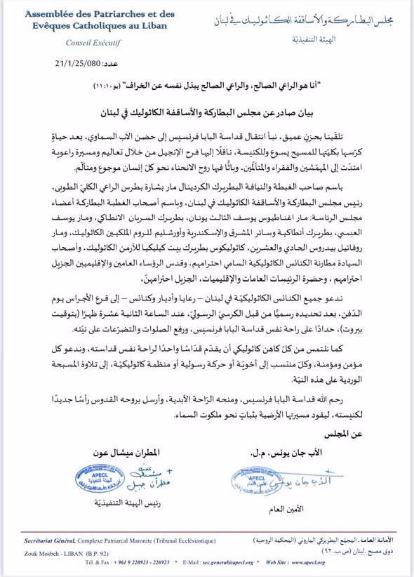 قرع أجراس الكنائس وذبائح إلهية وصلوات 22 أبريل، 2025 ShareShareShare Previous Postرئيس الكتائب إلتقى المرشح لرئاسة بلدية الجديدة البوشرية السدّ أوغست باخوس Next Postقراءة في صحف اليوم