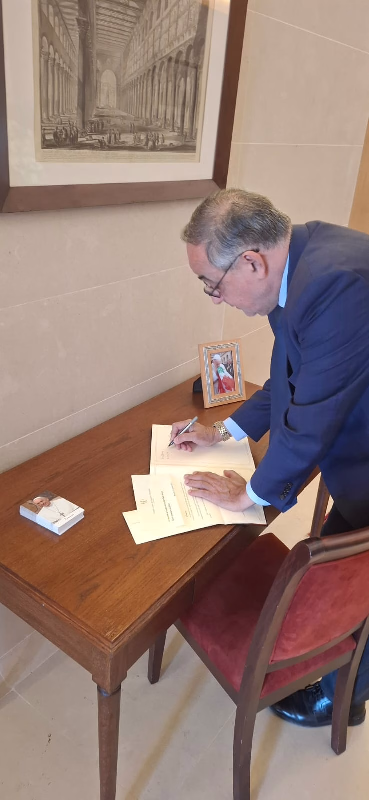 وخلال الزيارة، نقل رئيس المجلس مشاعر الحزن والمواساة، ومدوّنًا في سجل التعازي بإسم المجلس العام الماروني، عن تأكيده على تضامن المجلس الكامل مع الكرسي الرسولي في هذا المصاب الجلل، مؤكدًا أن البابا الراحل سيبقى في وجدان الكنيسة الجامعة، وأن ذكراه ستظل منارةً روحية لكل المؤمنين في لبنان والعالم.