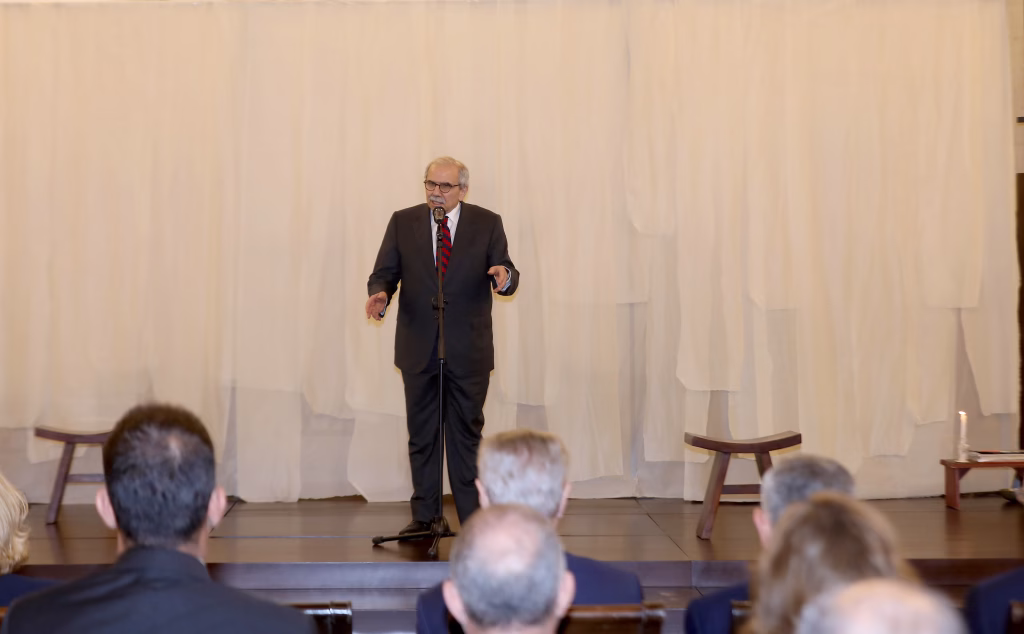 وفي نهاية العرض قلد الرئيس سلام طربيه وسام الاستحقاق اللبناني وقال:”تقديرا لمسيرته الفنية المسرحية والثقافية كلفني فخامة الرئيس عون وشرفني بأن اقلد الممثل المسرحي رفعت طربيه وسام الاستحقاق اللبناني.”