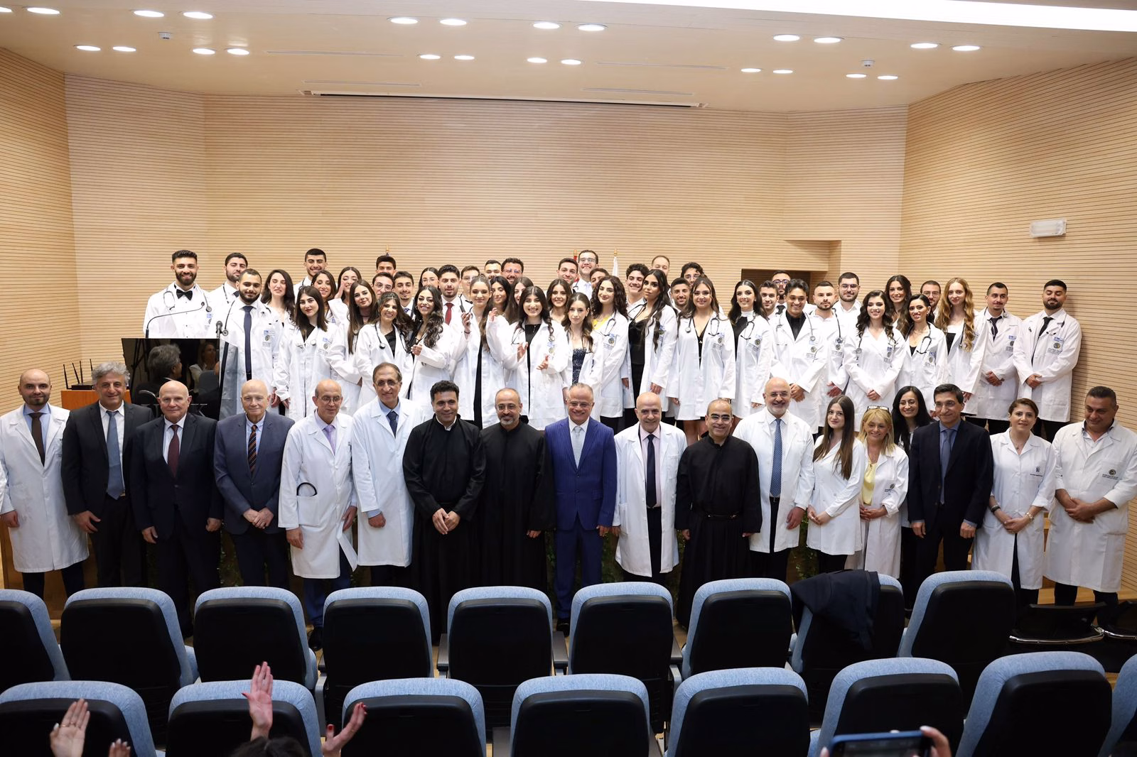 وقال الأب الخوري “إن ارتداء الثوب الأبيض لا يمنح الحكمة بحد ذاته، بل هو رمز لمكانة تُصنع بالمسؤولية والرحمة”، مشيرًا إلى “أن “الحكيم” هو من يدمج العلم بالعاطفة، وهو ما سيمنح الأطباء الجدد التميز في المستقبل”.