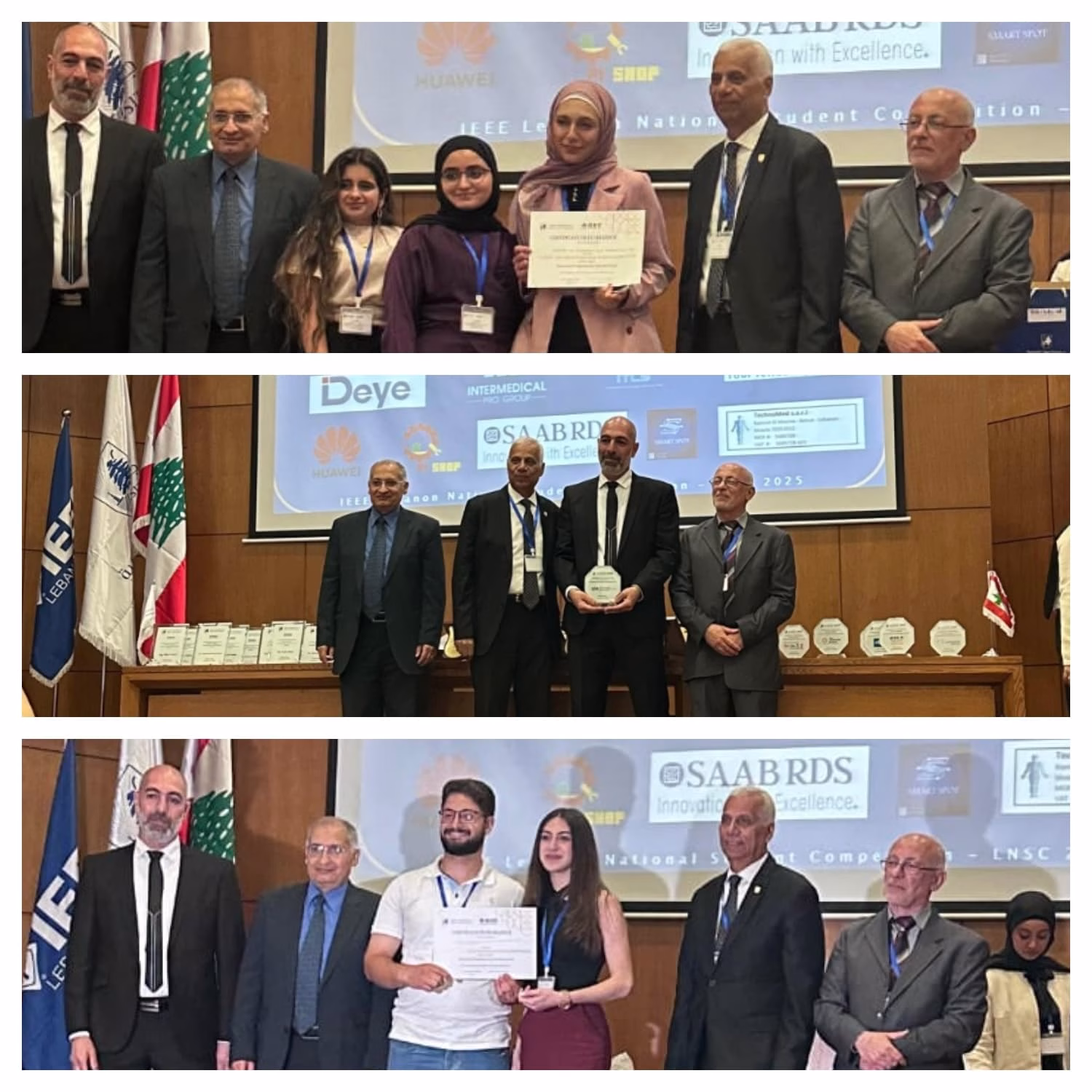 إلى جانب إشرافه على هذه الفرق الفائزة، حصل الدكتور محمد دياب، أستاذ ورئيس قسم الهندسة الكهربائية وهندسة الحاسوب في RHU، على تكريميْن خاصيْن: الأول لدوره كمنظم رئيسي في مسابقة LNSC’25، والثاني كرئيس لفرع IEEE EMBS في لبنان.