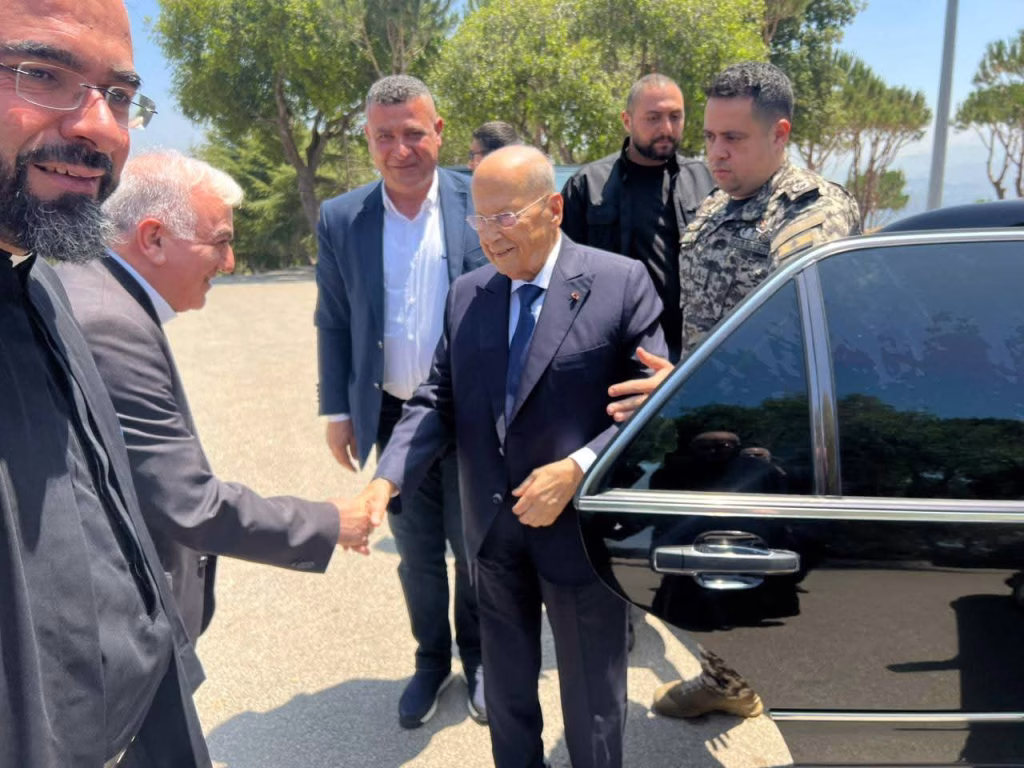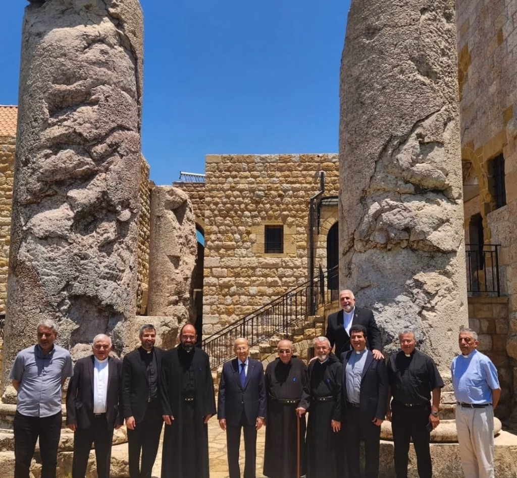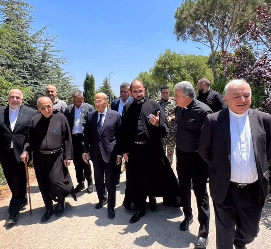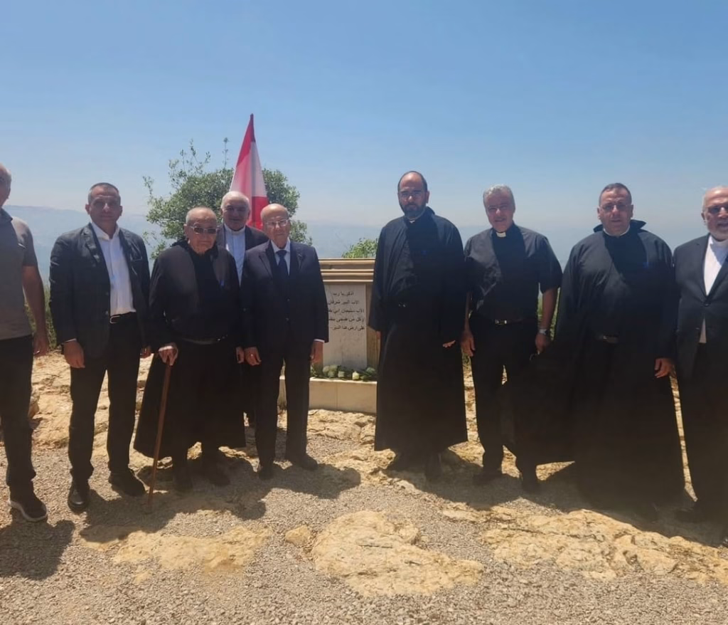ميشال عون في دير القلعة.. صلاة ووردة بيضاء