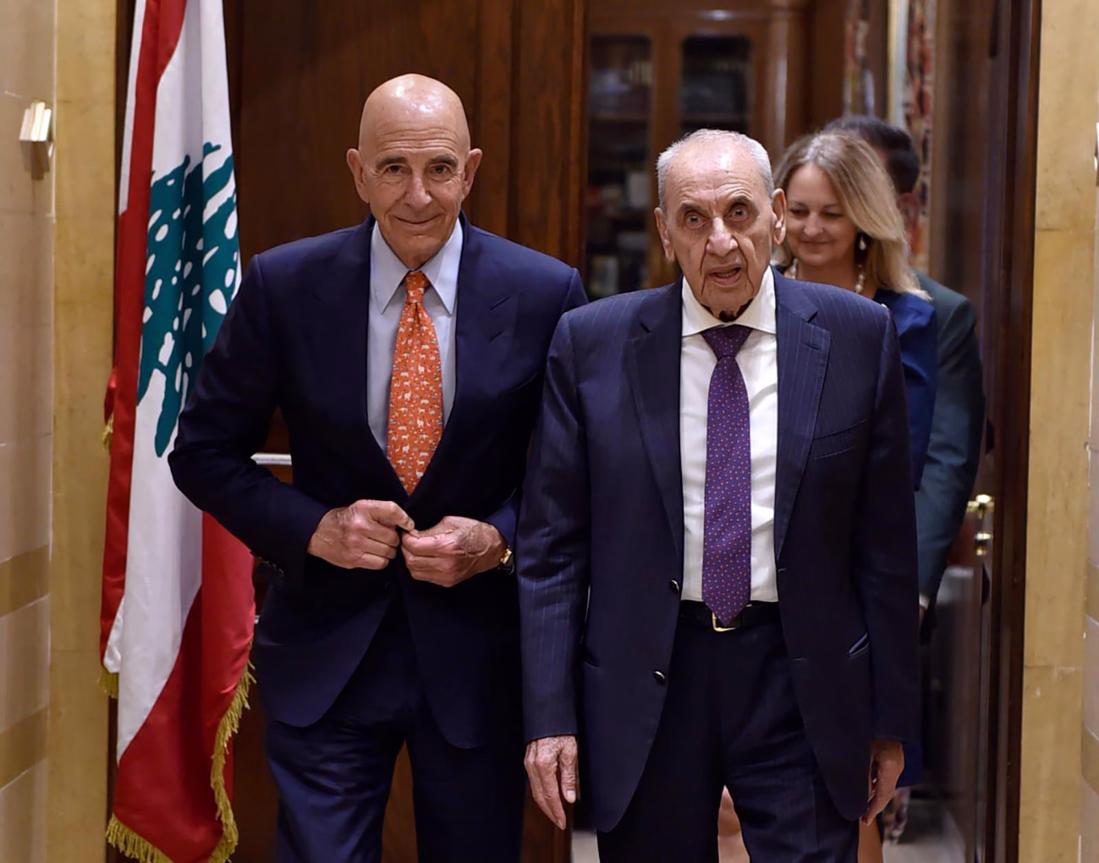 استقبل رئيس مجلس النواب نبيه بري في مقر الرئاسة الثانية في عين التينة السفير الأميركيّ في تركيا الموفد الخاص إلى سوريا توماس براك والوفد المرافق بحضور السفيرة الاميركية لدى لبنان ليزا جونسون والمستشار الإعلامي للرئيس بري علي حمدان ، وتناول اللقاء الذي إستمر لأكثر من ساعة ، تطورات الأوضاع في لبنان والمنطقة والمستجدات السياسية والميدانية .
