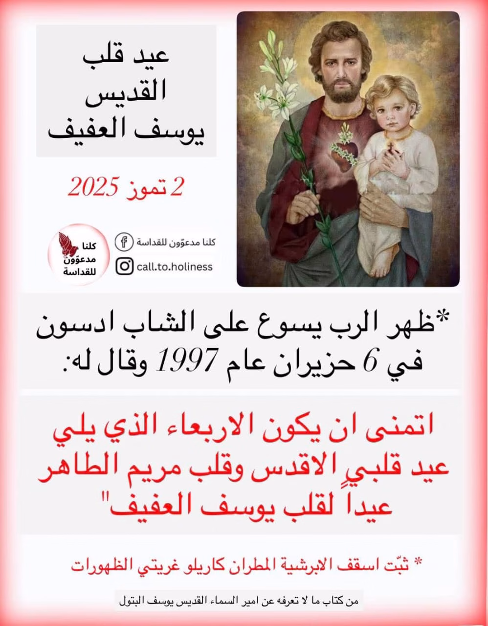 اليوم عيد قلب مار يوسف، ينعاد على الجميع بالخير والصحة، وخاصّة على كل شخص حامل إسم مار يوسف، وعلى كل الآباء🙏🙏🙏