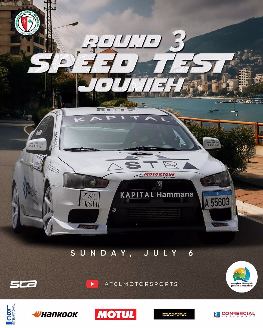 ينظّم النادي اللبناني للسيارات والسياحة ، بالتعاون مع بلدية جونيه،السباق الثالث للسرعة (سبيد تست) ، في شوارع مدينة جونيه الأحد 6 تموز الجاري.ويندرج السباق ضمن الجولة الثالثة من بطولة لبنان لسباقات السرعة لعام 2025.وأعلن النادي المنظّم عن اقفال باب التسجيل للمشاركة في السباق عند الساعة الرابعة من بعد ظهر الجمعة 4 تموز الجاري.