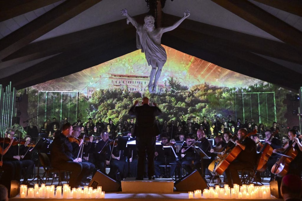 لمدة ساعة ونصف من الوقت ،أنشدت جوقة الجامعة الأنطونية وجوقة جامعة سيدة اللويزة باقة من الترانيم التي ألفها ووزعها آباء أنطونيون، وذلك بقيادة الأب المايسترو توفيق معتوق الأنطوني