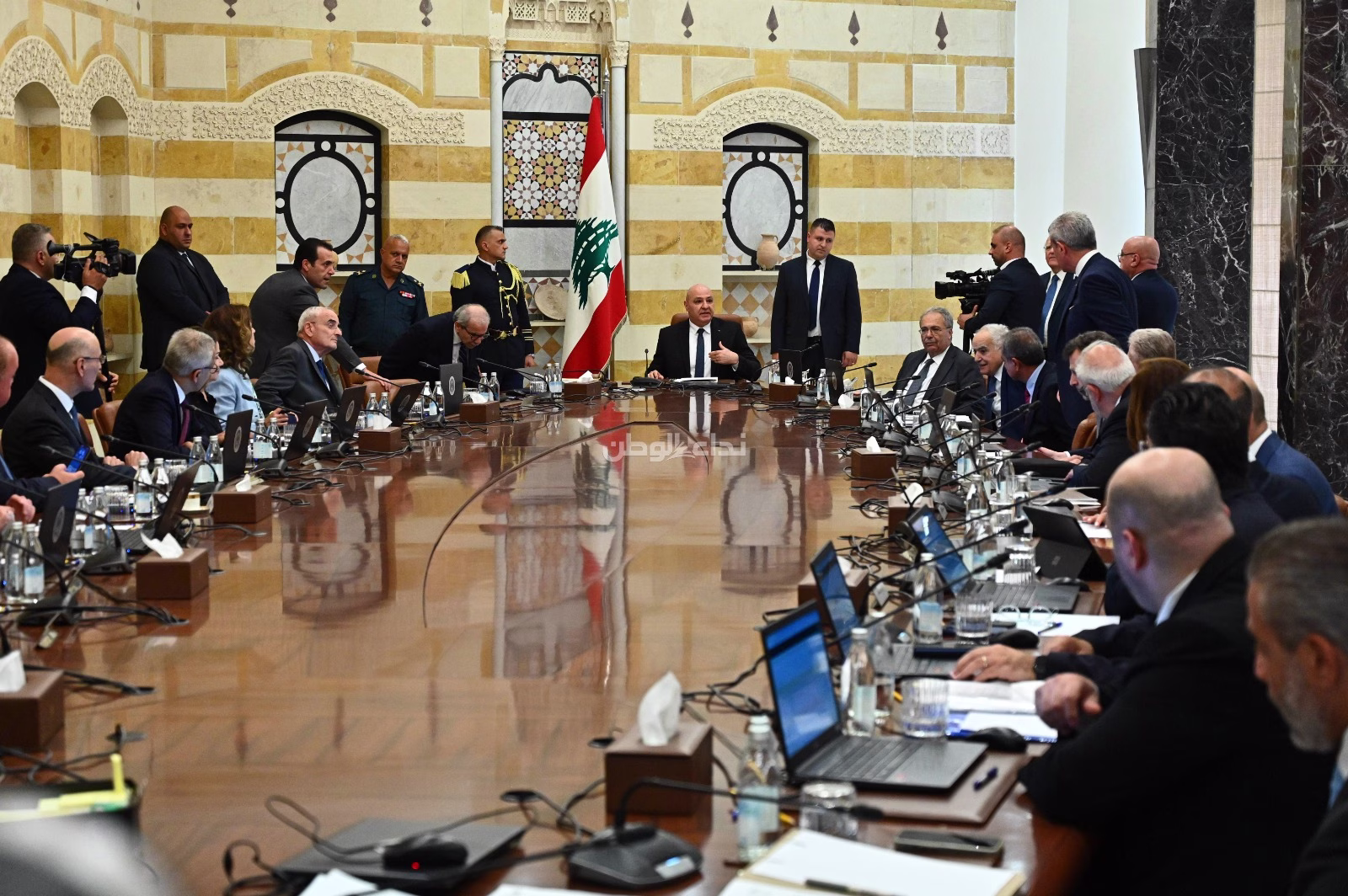 اقرّ مجلس الوزراء في جلسته التي عقدها بعد ظهر اليوم في قصر بعبدا برئاسة رئيس الجمهورية العماد جوزاف عون، تكليف الجيش اللبناني وضع خطة تطبيقية لحصر السلاح قبل نهاية العام الحالي، في يد الجهات المحددة لاعلان الترتيبات الخاصة بوقف الاعمال العدائية وحدها، وعرضها على مجلس الورزاء قبل 31 من الشهر الجاري لمناقشتها وإقرارها. وسيستكمل المجلس درس مسألة حصرية السلاح، في جلسته المقبلة.