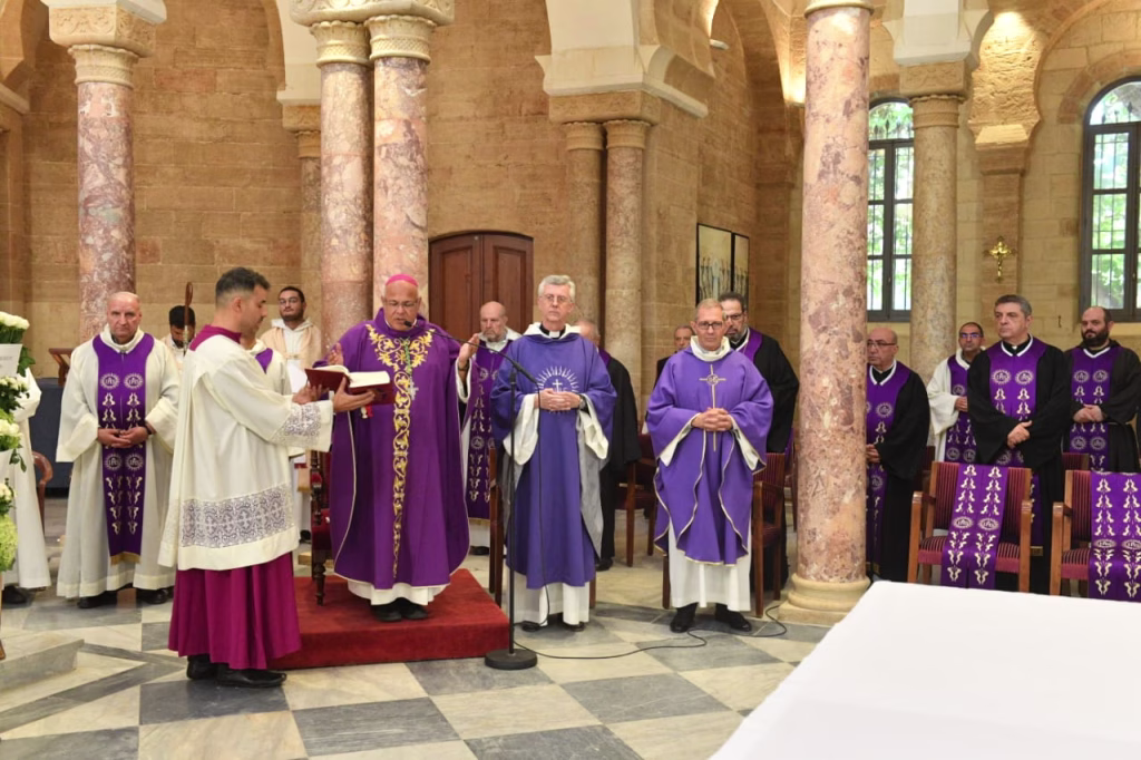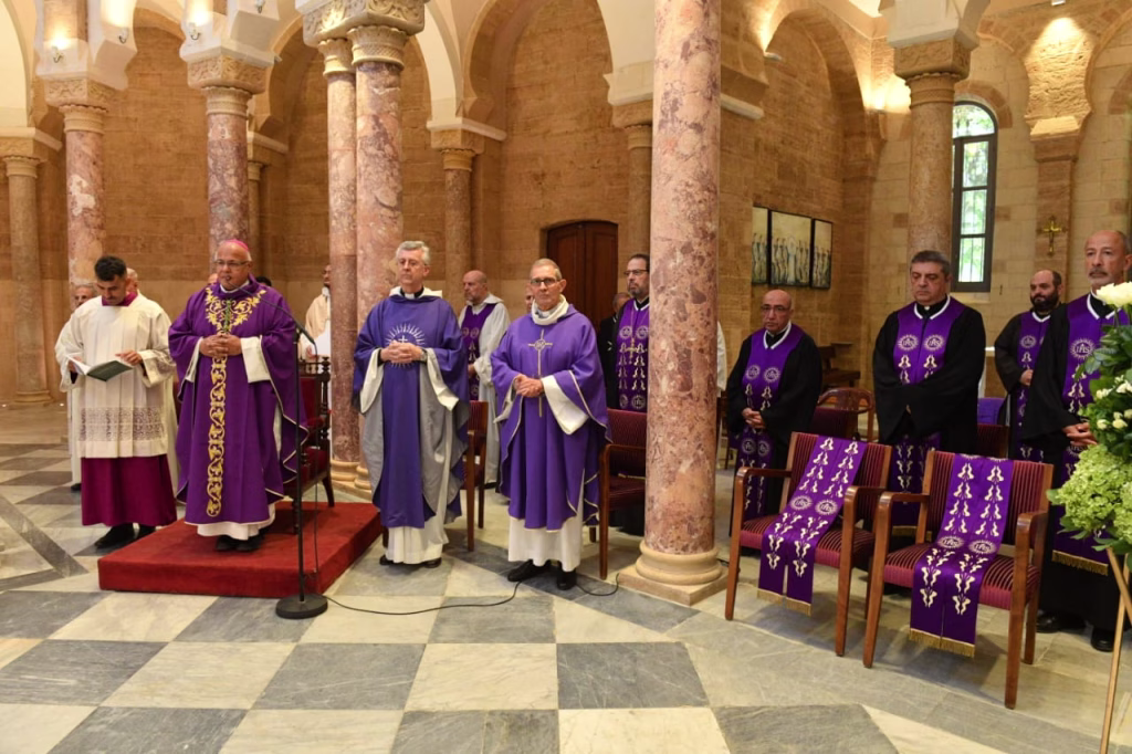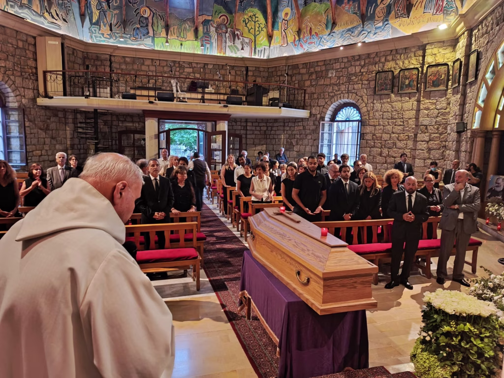 ترأس الصلاة لراحة نفسه مطران اللاتين في لبنان سيزار آسايان يحيط به الأب فيكتور أسود ورئيس جامعة القديس يوسف الأب سليم دكاش ولفيف من الكهنة.