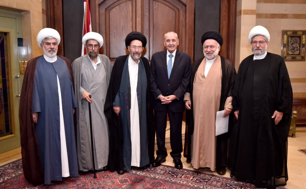 رئيس المجلس النيابي إستقبل أيضا وفداً علمائياً ضمّ سماحة المفتي العلامة السيد علي مكي وعضو الهيئة الشرعية في المجلس الاسلامي الشيعي الأعلى العلامة السيد كاظم إبراهيم ، القاضي الشيخ حسين قصاص ، العلامة الشيخ ابراهيم فواز ، والعلامة الشيخ موسى البغدادي .