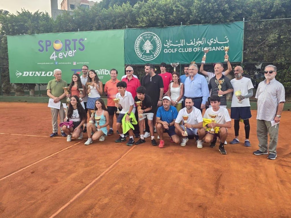 أختتمت دورة نادي الغولف المفتوحة في التنس التي أقيمت بإشراف الإتحاد اللبناني للعبة وجرت منافساتها على ملاعبه الخمسة في منطقة الجناح – بيروت وأقيم حفل توزيع الجوائز على الفائزين والفائزات بحضور رئيس الإتحاد اللبناني للتنس آلان صايغ وممثل رئيس نادي الغولف كريم سليم سلام نائبه ماهر بيضون وعضو الهيئة الإدارية للنادي رئيسة لجنة الأنشطة صونيا ياسين وممثل رئيس مجلس إدارة طيران الشرق الأوسط محمد الحوت الكابتن محمد عزيز ومدير الدورة رئيس لجنة التنس في نادي الغولف نائب رئيس الإتحاد اللبناني للتنس حسان الداعوق وعضولجنة التنس إسماعيل فرج وأهالي اللاعبين واللاعبات .