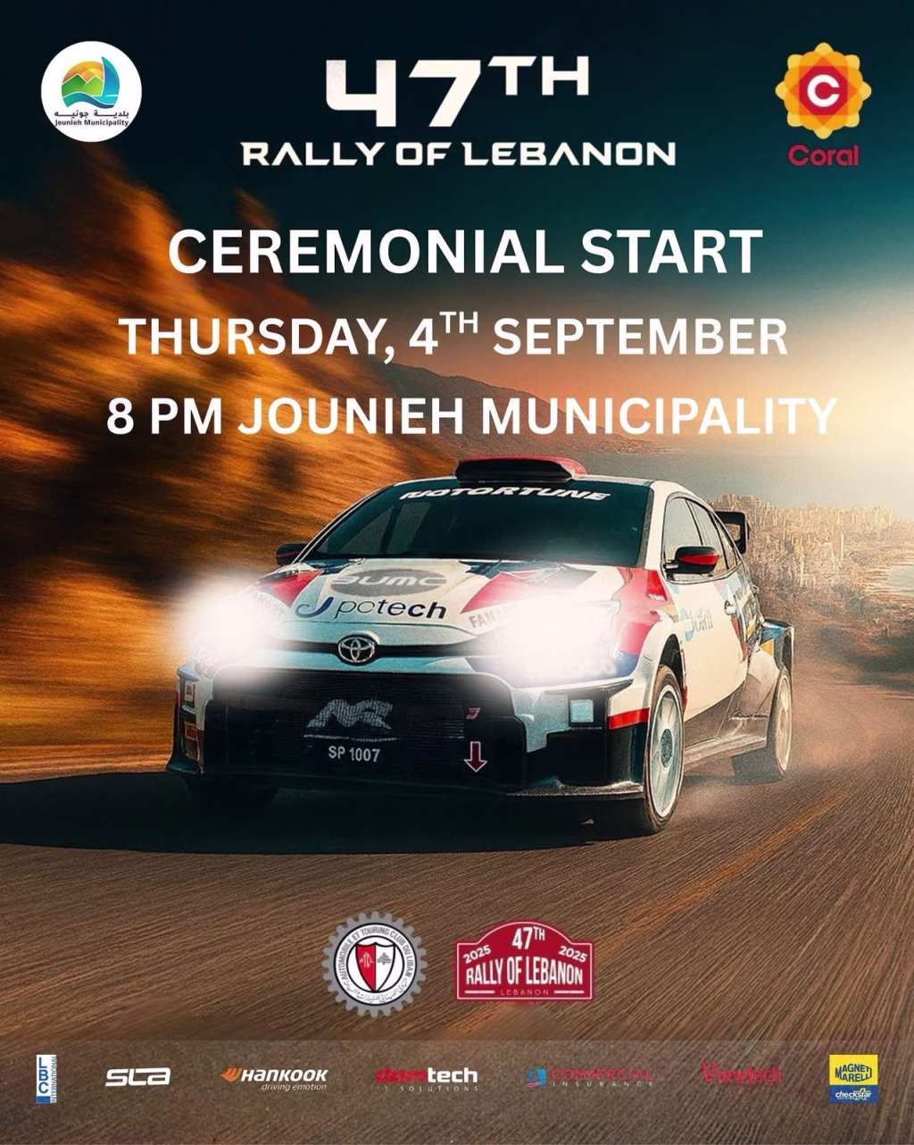 يُنظم النادي اللبناني للسيارات والسياحة رالي لبنان الدولي السابع والأربعين بين 4 و7 ايلول الجاري برعاية رئيس الجمهورية العماد جوزاف عون.