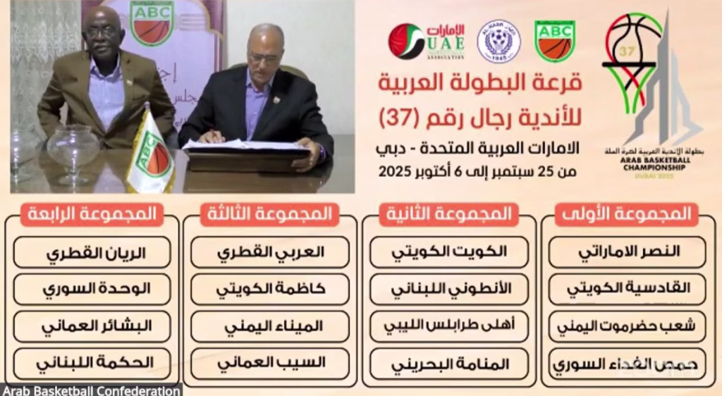 أُجريت قرعة البطولة العربية للأندية لكرة السلة – النسخة 37، والتي ستقام في دبي – الإمارات العربية المتحدة بين 25 أيلول و6 تشرين الأول 2025، بمشاركة فريقي الحكمة بقيادة المدرب جو غطاس والأنطونية بقيادة المدرب رالف عقل ممثّلَين للبنان في هذه البطولة القوية.