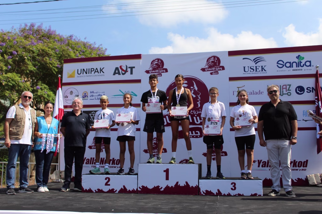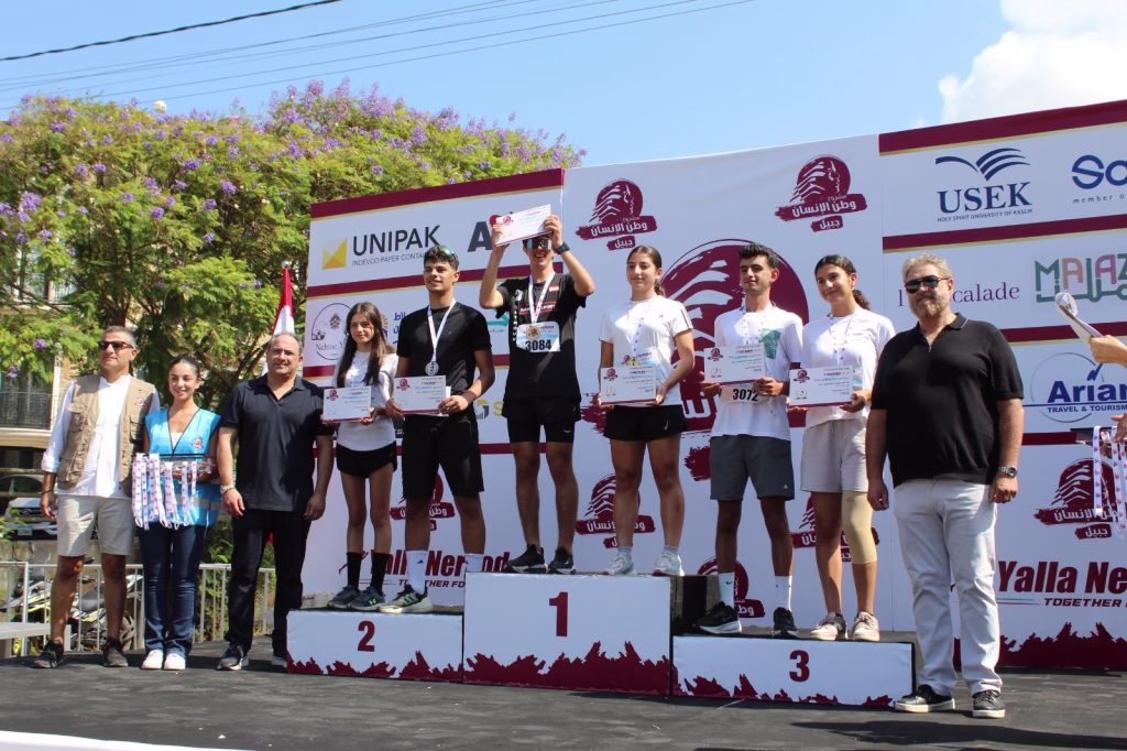 أمّا كلمة “مشروع وطن الإنسان – جبيل”، فألقاها المهندس يوسف فاكيه، الذي شكر الجميع على حضورهم ومشاركتهم في السباق، وخصّ بالذكر، تعاون بلديتي جبيل وبلاط- مستيتا – قرطبون والقوى الأمنيّة والإعلاميين والكشاف الماروني والصليب الأحمر والدفاع المدني والفريق الطبي ومستشفيات سيدة المعونات، سيدة ماريتيم وKMC، ودعم الرعاة الذين كانوا كثر هذه السنة، وهذا دليل على أن المؤسّسات الخاصّة والعامّة تقف الى جانب المبادرات التي تدعم الشباب اللبنانيّ والقطاع التربويّ والرياضة في لبنان.