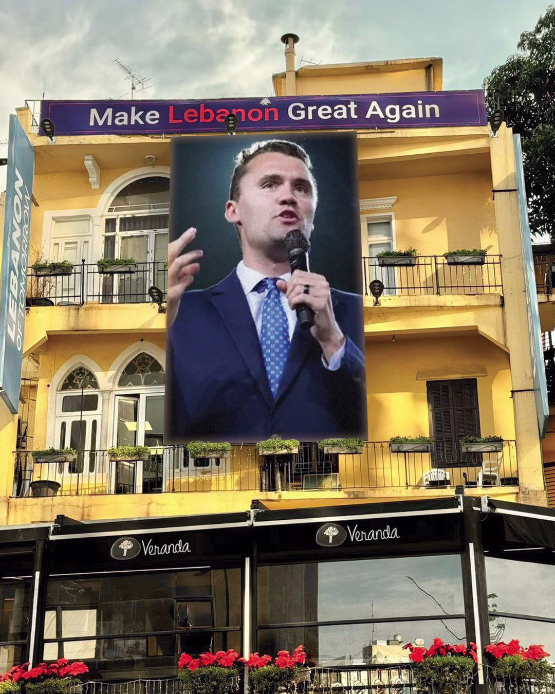 ‏رفع صورة ضخمة للناشط الأمريكي شارلي كيرك في الأشرفية