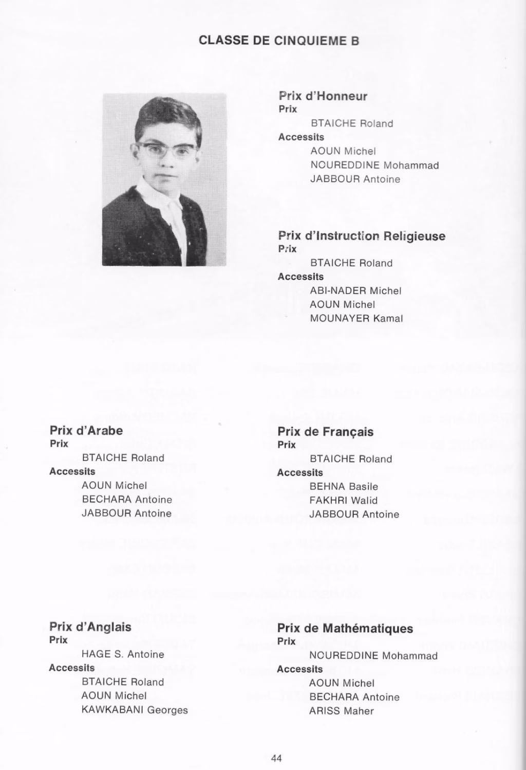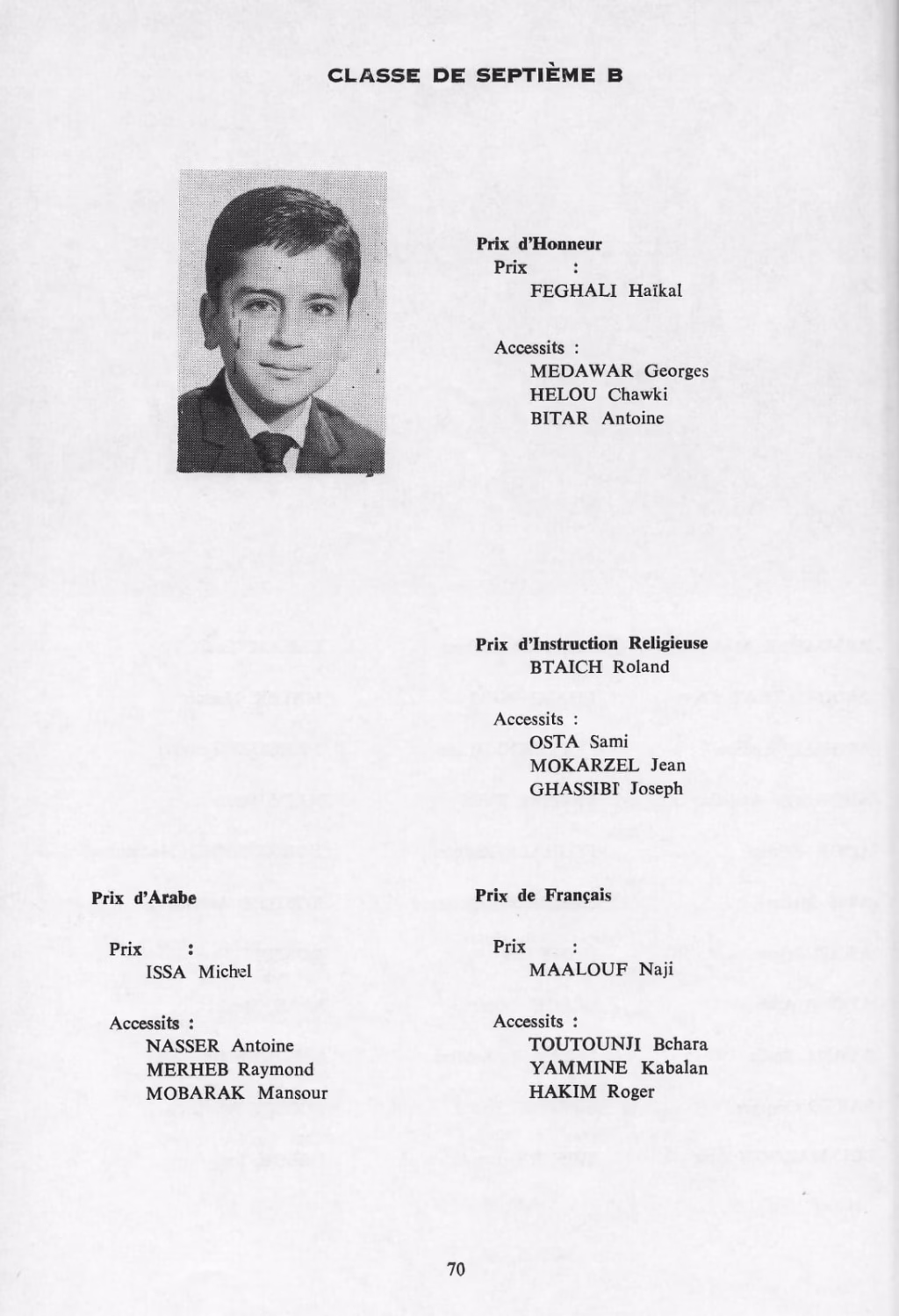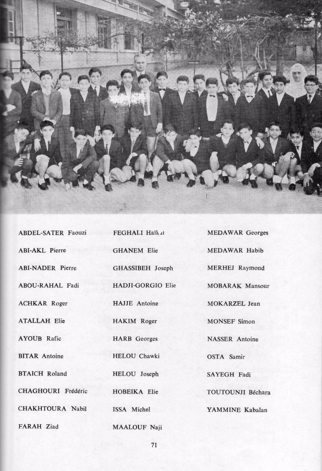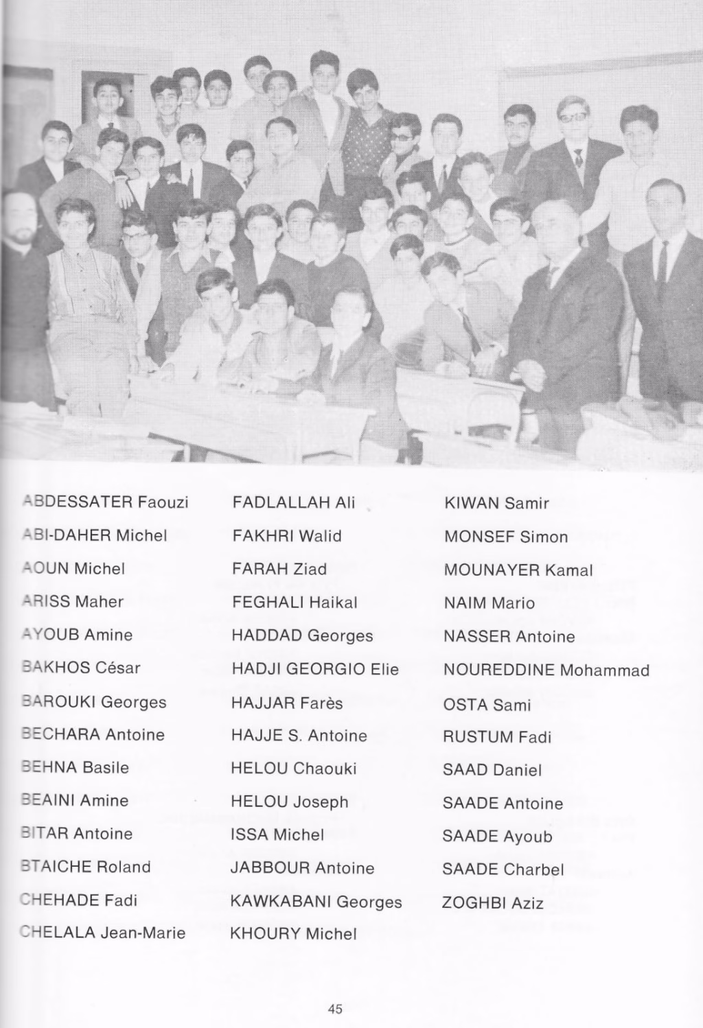 ومن الذين أعرفهم وما زلت على تواصل معهم وهم رفاق الصف لسعادة السفير الحكماوي.. الصحافي الصديق منصور مبارك ابن شقيق المطران إغناطيوس مبارك وخال النائبة السيدة ستريدا جعجع . كما كان من رفاق السفير في المدرسة الدكتور هيكل الفغالي وفوزي حسيب عبد الساتر، ابن بحر اللغة العربية العلامة حسيب عبد الساتر ونبيل شختورة ابن أبو عادل صديق الحكماويين وجوزف حلو شقيق المرحوم غي حلو. ذكرت هذه الأسماء التي أعرفها شخصيًا. ولكني شأنشر بعضًا من صفحات من الكتاب السنوي المكتوب فيها اسماء رفاق الصف لسعادة السفير الحكماوي.