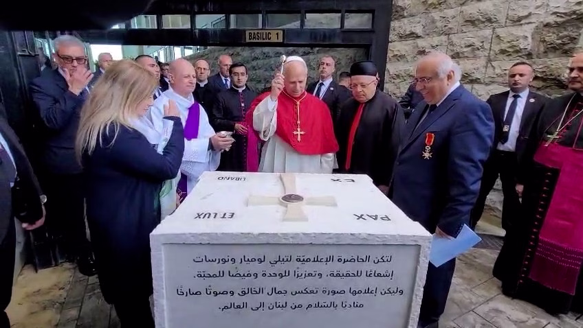 تحت أنظار سيّدة لبنان- حريصا، وأمام كلّ الأساقفة والكهنة والمكرّسين والمكرّسات والعاملين الرّعويّين، وفي لحظة مؤثّرة ومقدّسة، بارك البابا لاون الرّابع عشر حجر أساس الحاضرة الإعلاميّة لتيلي لوميار ونورسات، إيمانًا برسالتها في بحر البشارة، وفي زمن يحتاج فيه العالم إلى نور الإنجيل وسط ظلمات الحرب والنّزاعات والصّراعات، بخاصّة في هذا الشّرق المتألّم.