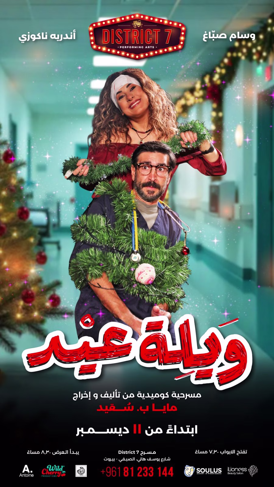 بعد صدور أمر تقييدي من المحكمة يمنعها الاقتراب من الدكتور ورده، تقرر كارلا افتعال حادث سيارة أمام باب طوارئ المستشفى حيث يعمل كي تمضي ليلة عيد الميلاد برفقته عنوة.ويلة عيد، كوميديا ميلادية عاطفية من تأليف وإخراج مايا ب.سُعيد، تمثيل وسام صبّاغ و أندريه ناكوزي على مسرح دستريكت ٧