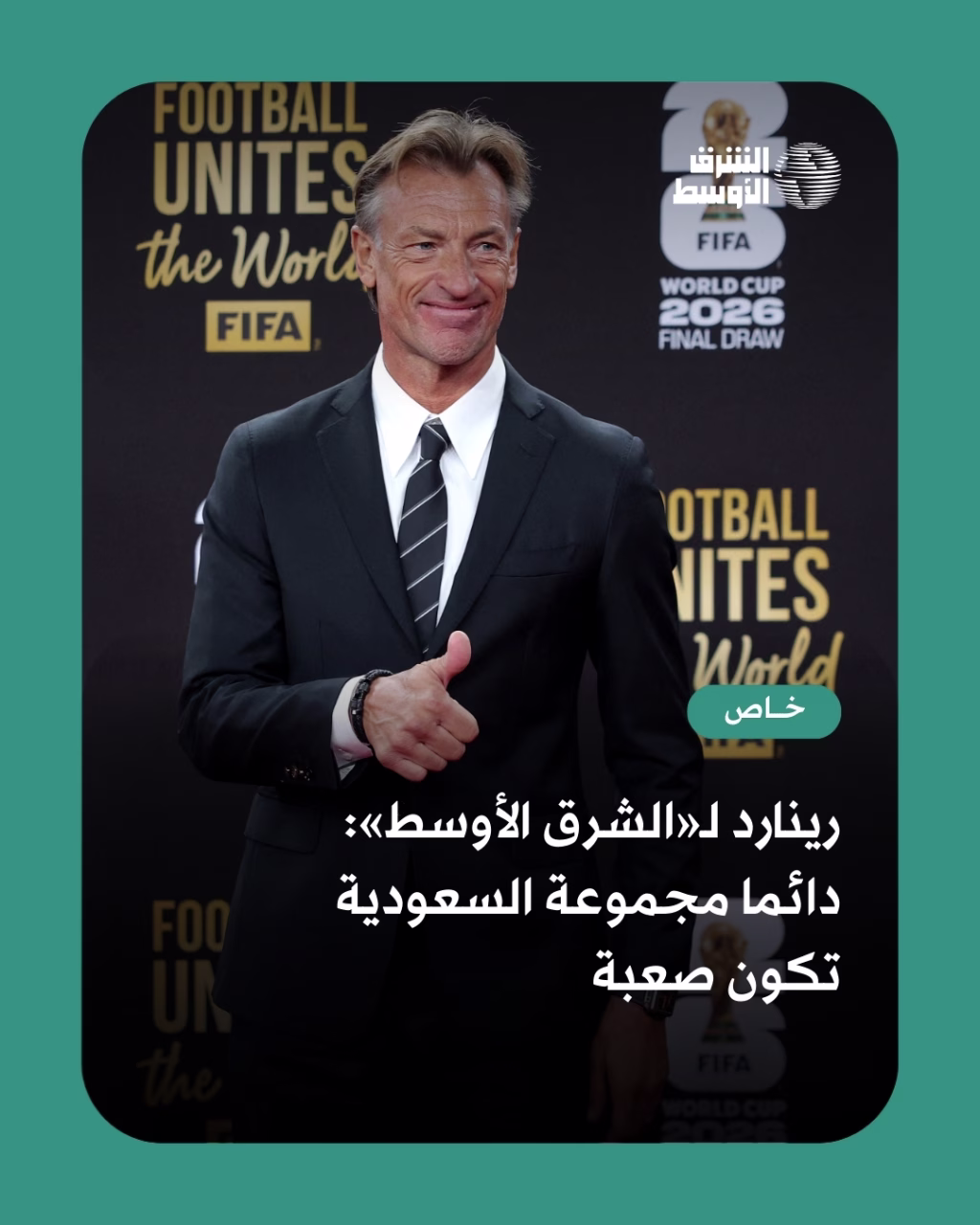 المدير الفني للمنتخب السعودي، يتحدث لـ«الشرق الأوسط» عن رأيه في المجموعة التي وقع فيها الأخضر بكأس العالم 2026، قائلاً: «دائما مجموعة السعودية تكون صعبة، قبل أربع سنوات كانت مجموعتنا تضم الأرجنتين والمكسيك. أما اليوم، فلدينا إسبانيا، الفريق الأول في تصنيف الفيفا، ويمكننا القول إنه أفضل فريق في العالم»