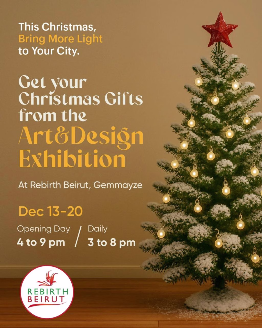 أعلنت جمعية Rebirth Beirut عن إطلاق معرضها السنوي لعيد الميلاد للفن والتصميم، في دعوة جديدة للجمهور لـ”إضاءة المدينة خلال موسم الأعياد. يُفتتح المعرض يوم السبت 13 كانون الأول 2025 من الساعة 4:00 عصرًا حتى 9:00 مساءً، ويستمر يوميًا حتى السبت 20 كانون الأول من الساعة 3:00 بعد الظهر حتى 8:00 مساءً، وذلك في مقر الجمعية في الجميزة.