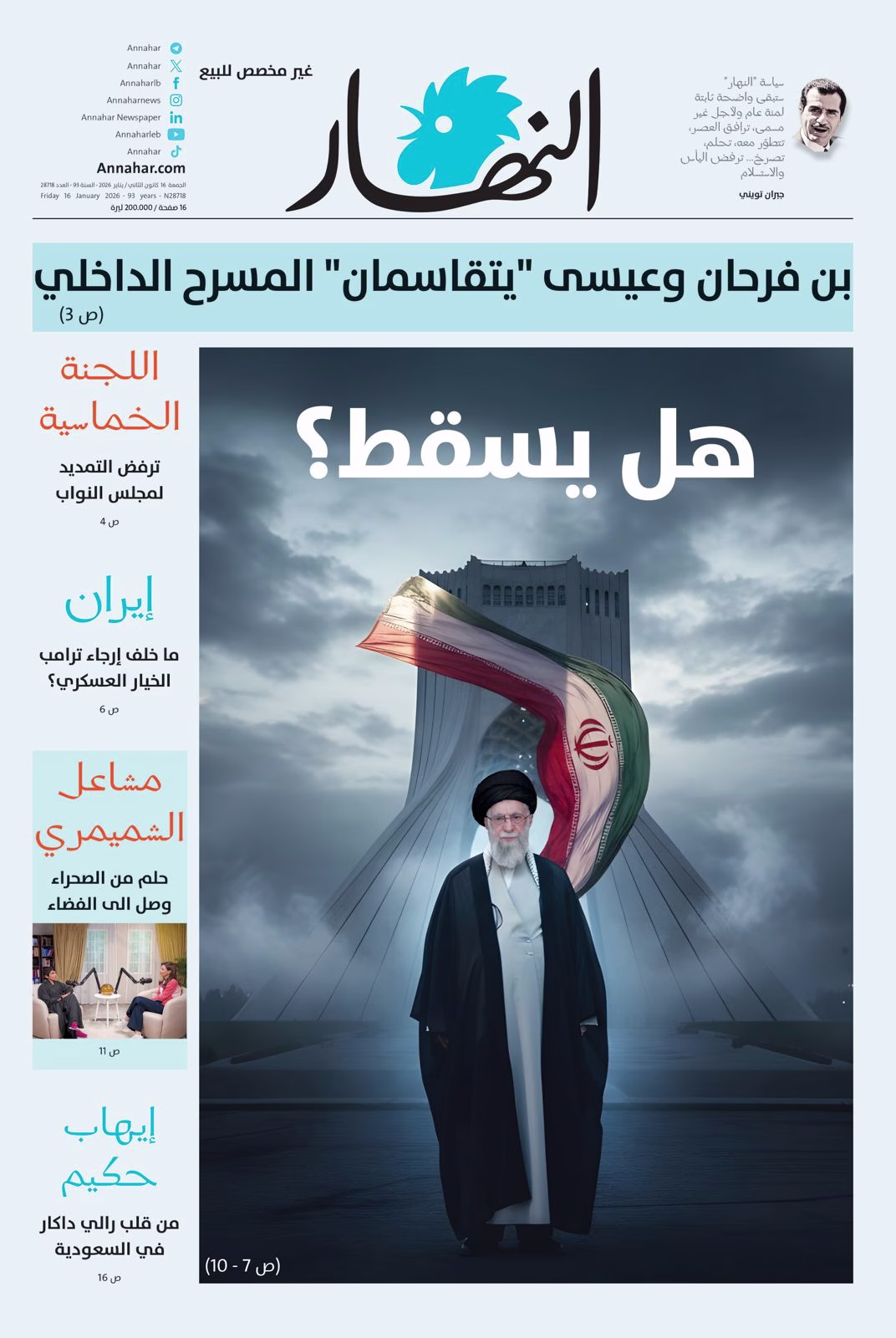 إليكم أبرز عناوين “النهار” ليوم الجمعة 16 كانون الثاني 2026: