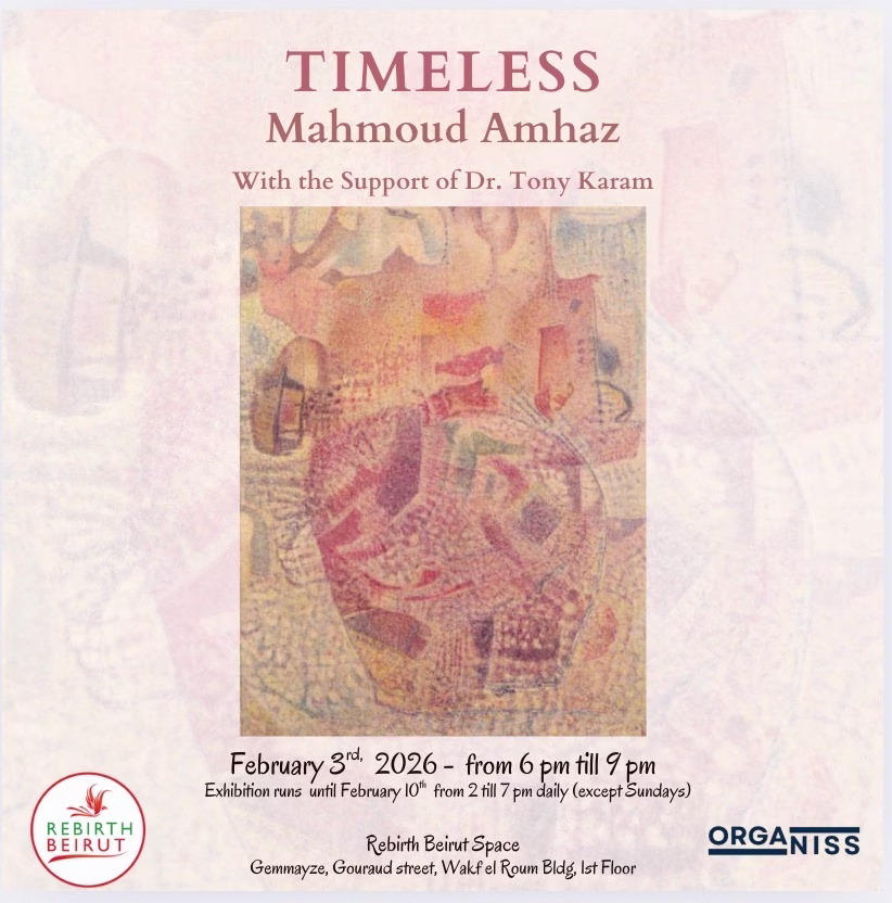 يشكّل Timeless فرصة نادرة لاختبار اللغة البصرية المتفرّدة لمحمود أمهز—لغة صاغها عبر عقود، وما زالت تنبض بالحياة اليوم—بالتوازي مع المساهمة في دعم الحراك الثقافي والمدني في بيروت.