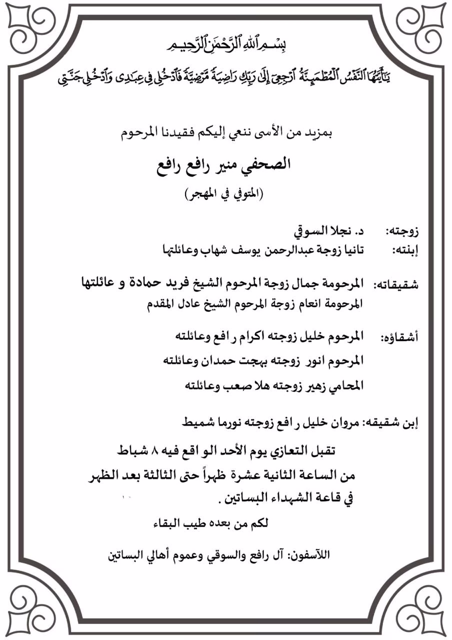 ​رحم الله منير رافع، واسكنه فسيح جناته، ولآله جميل الصبر والسلوان.