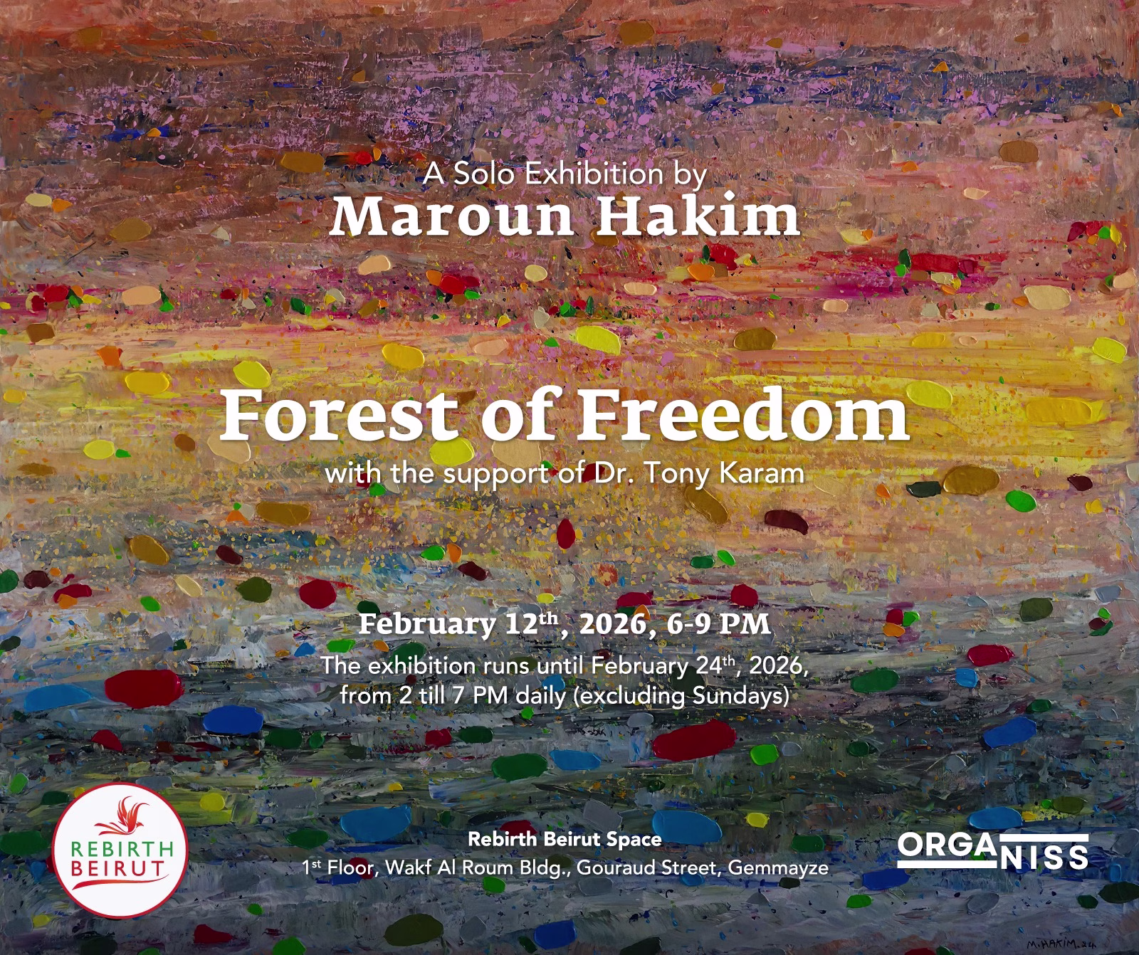 كما جرت على عادتها بتقديم ما هو جديد ومبدع، تستقبل جمعية” Rebirth Beirut غابة الحريّة”Forest of Freedom ، وهو معرض فردي للفنان التشكيلي اللبناني المعروف مارون الحكيم، بتنظيم من Organiss Management وبدعم من الدكتور طوني كرم.