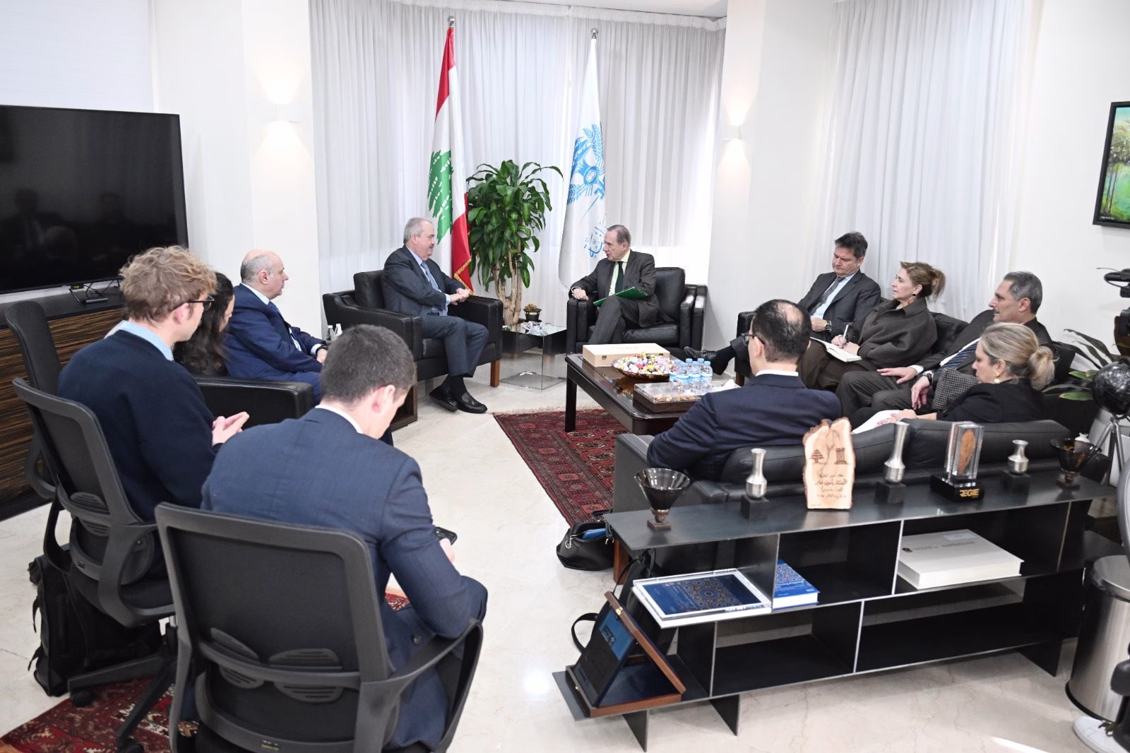 استقبل وزير المالية ياسين جابر المستشار الاقتصادي والمبعوث الخاص لرئيس الجمهورية الفرنسية، السيد جاك دو لا جوجي، في زيارة عمل حيث عقد اجتماع حضره رئيس القسم الاقتصادي الإقليمي فرانسوا سبورير، والملحقة الاقتصادية والمالية كنزا وزاني، والمستشار المالي في السفارة الفرنسية فينسان دو دري، إلى جانب مدير المالية العامة جورج معراوي، والمستشارين سمير حمود وزينة قاسم وكلودين كركي، والخبير من الخزانة الفرنسية عبدنور براهمي، والخبير الفني الدولي أدريان هارتمان.