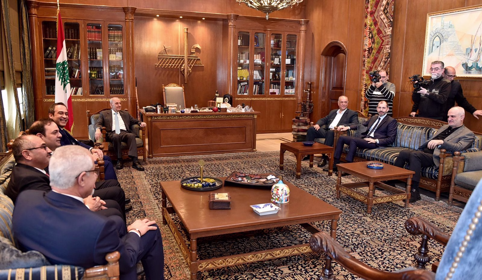 الرئيس بري تابع تطورات الاوضاع والمستجدات السياسية والميدانية على ضوء مواصلة اسرائيل عدوانها على لبنان وملفي النازحين والعفو خلال استقباله كبير مستشاري وزارة الدفاع البريطانية ، الوزير السابق الياس المر ، والنواب نبيل بدر ، سجيع عطية ، أحمد الخير ، بلال الحشيمي ، محمد سليمان ، وحيدر ناصر .